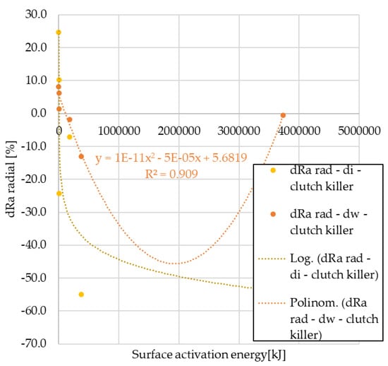 Variation of radial Ra values as a function of activation energy—clutch killer facings.