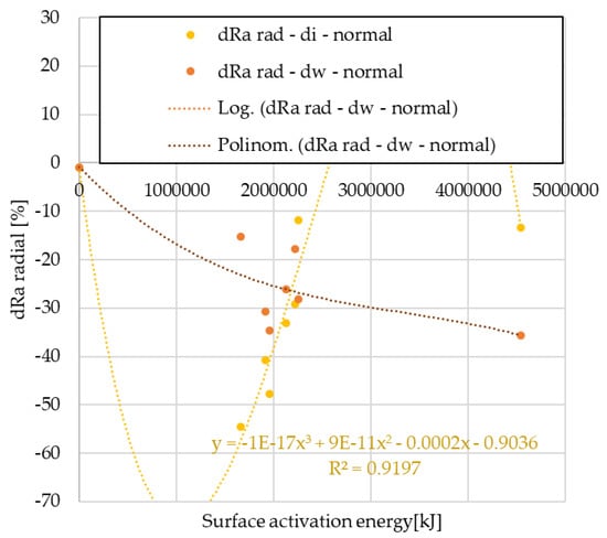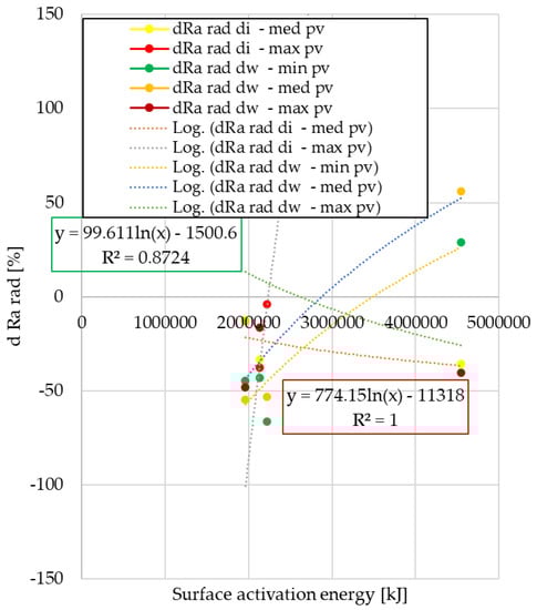 Variation of radial Ra values as a function of activation energy—normal use facings.