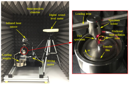 The friction-induced noise was measured using a digital sound level meter (GM1357), with 30–130 dB measurement range and an accuracy of ±1.5 dB. Measurements were carried out in a semi-anechoic chamber constructed as a wooden box lined with a high-density and echo-friendly polyurethane foam. The acoustic foam was capable of damping out low-to-mid noise frequencies inside the room. The recorded background noise, before running the experiments, was 35–37 dB. During the experiments, several measures were taken to exclude noise from external sources.