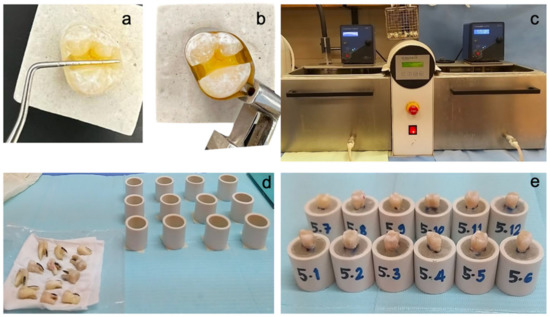 - Morresi, A.L.; D’Amario, M.; Capogreco, M.; Gatto, R.; Marzo, G.; D’Arcangelo, C.; Monaco, A. Thermal cycling for restorative materials: Does a standardized protocol exist in laboratory testing? A literature review. J. Mech. Behav. Biomed. Mater. 2014, 29, 295–308. [Google Scholar] [CrossRef]