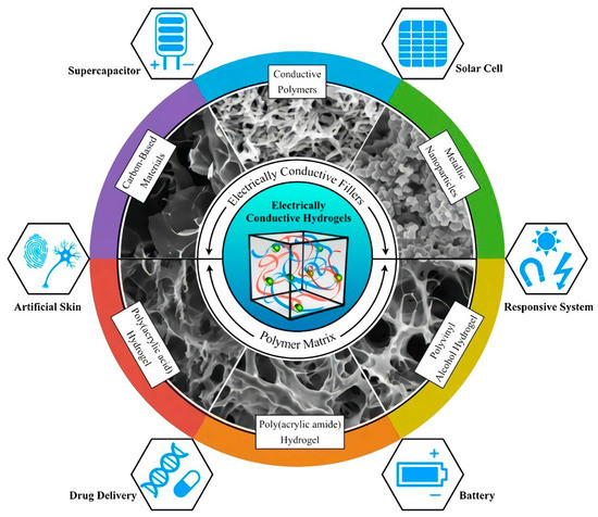 - Zhang, W.; Feng, P.; Chen, J.; Sun, Z.; Zhao, B. Electrically Conductive Hydrogels for Flexible Energy Storage Systems. Prog. Polym. Sci. 2019, 88, 220–240. [Google Scholar] [CrossRef]