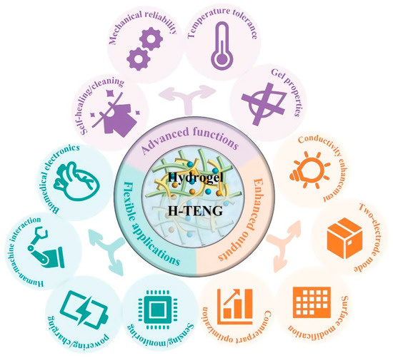 - Wu, Y.; Luo, Y.; Cuthbert, T.J.; Shokurov, A.V.; Chu, P.K.; Feng, S.P.; Menon, C. Hydrogels as Soft Ionic Conductors in Flexible and Wearable Triboelectric Nanogenerators. Adv. Sci. 2022, 9, 2106008. [Google Scholar] [CrossRef]