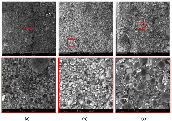 SEM micrographs: (a) A3, (b) C2 and (c) D1.