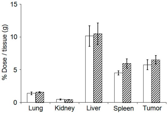 Each BALB/c mouse (n = 3) was subcutaneously inoculated with 100 µL of suspension of C26 cells in RPMI-1640 containing 10% FBS (1.0 × 106 cells/mL). The tumors were allowed to grow for 10 days. First, 200 μL of Cy5-CD@PICsome, which corresponded to 0.5 U/mL in 10 mM PBS (pH 7.4), was administered by intravenous (i.v.) injection through the tail vein of each mouse. At 24 and 72 h after injection, blood was collected from the postcaval vein using heparinized syringes, and the main organs (lung, kidney, liver, and spleen) and C26 tumor tissue were excised. After centrifugation of the collected blood at 20,000× g for 5 min at 4 °C, the fluorescence of the plasma was measured using an Infinite M1000 pro microplate reader (Tecan, Männedorf, Switzerland). The main organs were homogenized with 5× passive lysis buffer (Promega KK., Tokyo, Japan). The resulting colloidal solutions were measured using a microplate reader (excitation and emission wavelengths of 643 and 667 nm, respectively).