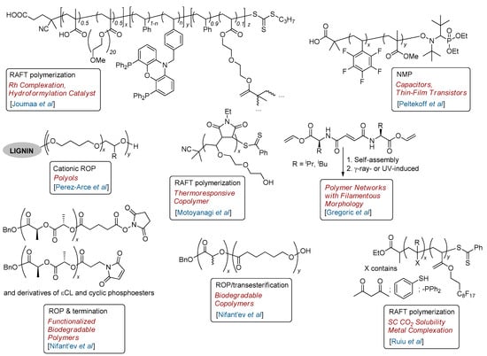 This Special Issue includes ten articles that highlight advances in controlled polymerization in the widest sense of the word. Despite the relatively small number of articles, these studies adopt qualitatively different approaches to polymers with a given composition, microstructure and functionality (Figure 1). Below is a brief summary of the papers included in this issue, considering the different approaches to the synthesis of macromolecules with given comonomer sequences, designed for different applications.