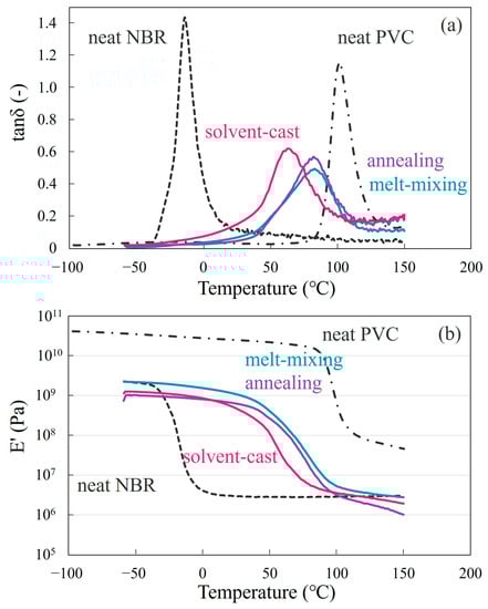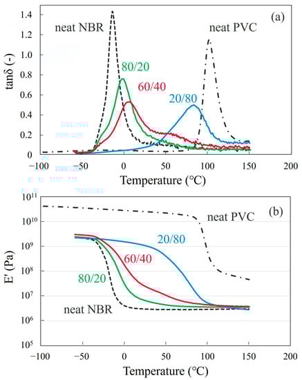 - Perera, M.S.; Ishiaku, U.; Ishak, Z.M. Characterisation of PVC/NBR and PVC/ENR50 binary blends and PVC/ENR50/NBR ternary blends by DMA and solid state NMR. Eur. Polym. J. 2001, 37, 167–178. [Google Scholar] [CrossRef]