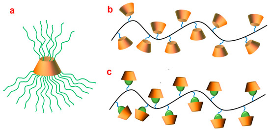 4.3. CDs Grafted on Polymer Chains or Complexed on Polymer Side Chains with Brush-like Structures