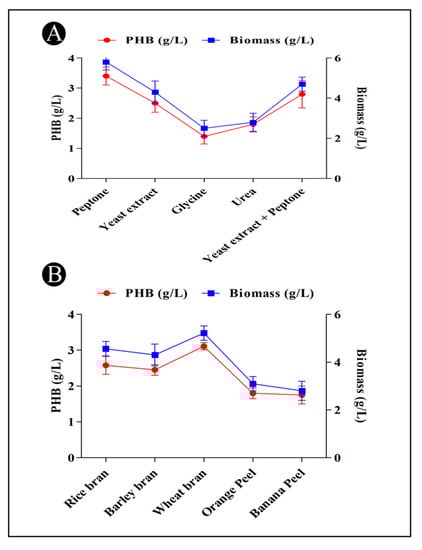 - Hassan, M.A.; Bakhiet, E.K.; Hussein, H.R.; Ali, S.G. Statistical optimization studies for polyhydroxybutyrate (PHB) production by novel Bacillus subtilis using agricultural and industrial wastes. Int. J. Environ. Sci. Technol. 2019, 16, 3497–3512. [Google Scholar] [CrossRef]