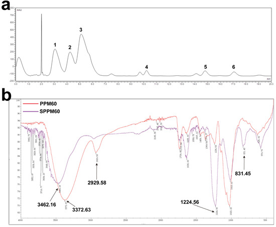 3.1. Monosaccharide Composition and Sulfating of PPM60