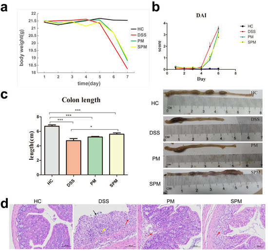 | SPM group | 3%DSS (free drinking) +200 mg/kg SPPM60 (i.g) | water (free drinking) + 200 mg/kg SPPM60 (i.g) | n = 10 |