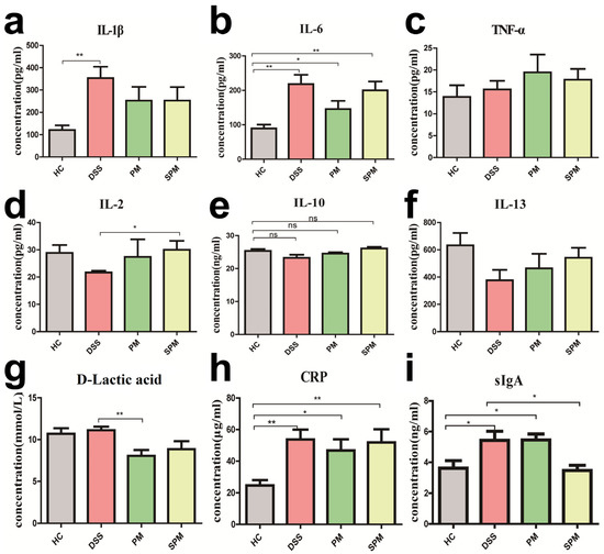 3.3. Effects of PPM60 and SPPM60 on Intestinal Immunity in UC Mice