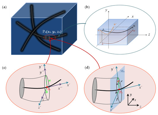According to the geometric relationship and vector calculation method of yarn cross-section torsion angle, reinforcement coordinate system and local coordinate system defined in Figure 2, the unit vector along the semi-major axis y’ of the elliptical cross-section can be obtained through Rodrigues’ rotation formula as follows:
