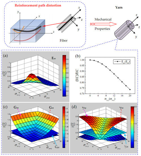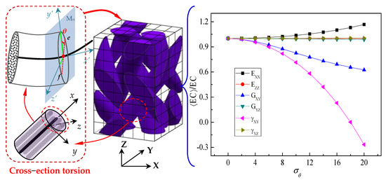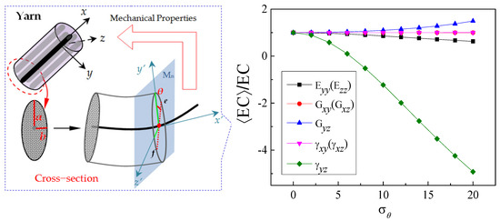 In addition, the effect of the random torsional effect of a cross-section on the elastic constants of the yarn is also shown in Figure 6.
