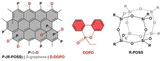 - Zhang, W.; Li, X.; Yang, R. Flame retardant mechanisms of phosphorus-containing polyhedral oligomeric silsesquioxane (DOPO-POSS) in polycarbonate composites. J. Appl. Polym. Sci. 2012, 124, 1848. [Google Scholar] [CrossRef]