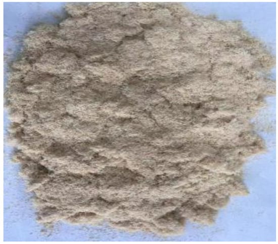 PLA was obtained from American Nature Works Co., b3052D, Minnetonka, MN, USA; ARP was passed through 120-mesh sieve made in our lab. The visual appearance of ARP is shown in Figure 1.