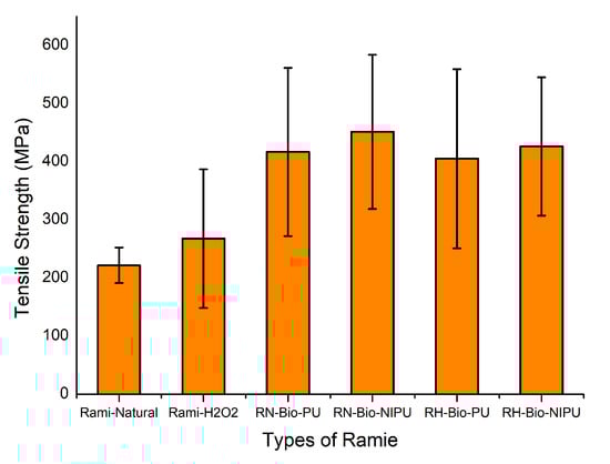 44]. Eventually, it is easier to bind and absorb resin materials when impregnation is carried out for pre-treated ramie fibers (RH).