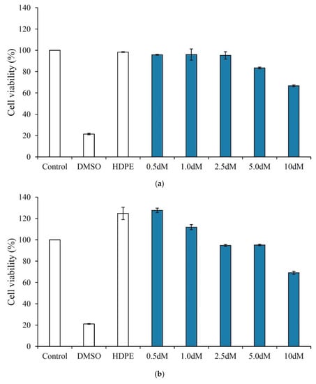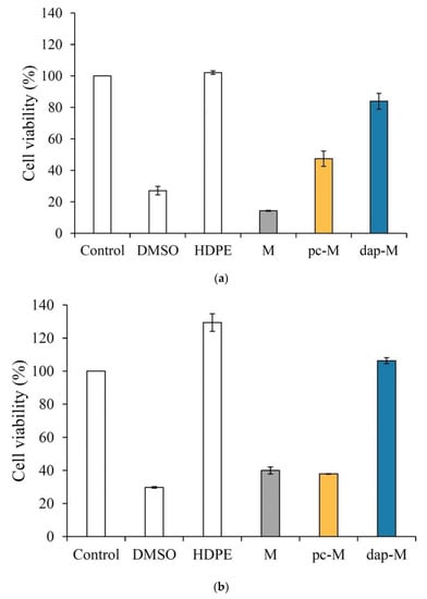 Fibroblast NIH-3T3 and L929 cells were used for cytotoxicity assays. Media and serum were purchased from Gibco®, Thermo Fisher Scientific Inc., Waltham, MA, USA. NIH-3T3 cells were cultured in Dulbecco’s modified Eagle medium (DMEM) containing 10% bovine serum. L929 cells were cultured in minimal essential medium alpha medium (MEMα) containing 10% horse serum.