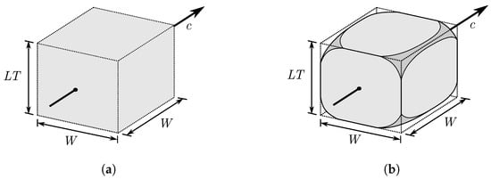 Section 2.1, the freeformer can only manufacture parts based on the file created by the slicing software, which contains information about the parameters and tracks used. For the APF process, there are two volume flows with regard to the tracks: one that results from the slicing software and one that is adjusted on the hardware side (freeformer) during the actual manufacturing process. These two volume flows are derived and equated in the following for inflexible volumes in order to be able to calculate the required parameters for a desired degree of filling.