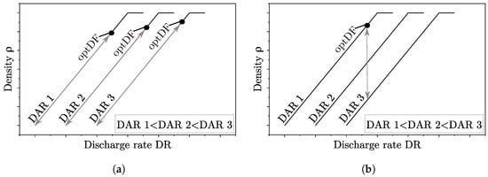 Figure 12a shows the approach used in this work. The DR is varied for constant DAR and LT. In this case, an optDF can be determined for one LT-DAR combination and searched for further optDF on other combinations. However, a more appropriate approach for parameter identification is the determination of the residual porosity factor