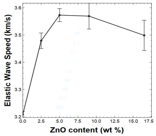 The distribution of elastic wave speed of composites with respect to the different wt % values of ZnO nanorods [standard deviations are marked with vertical black lines].