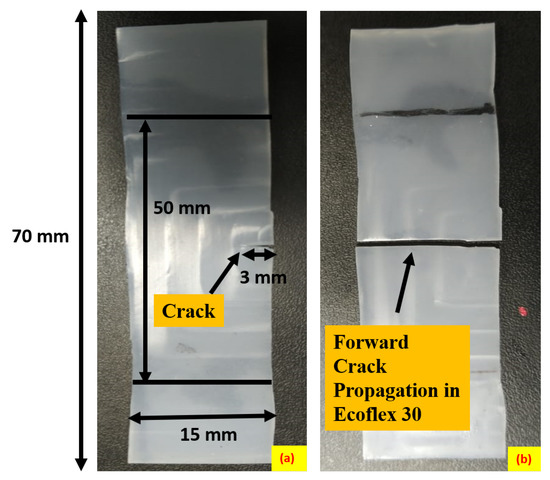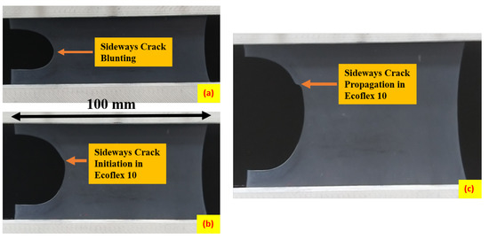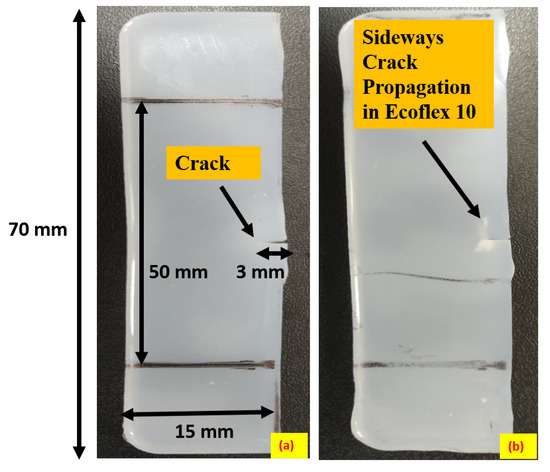 - Lee, S.; Pharr, M. Sideways and stable crack propagation in a silicone elastomer. Proc. Natl. Acad. Sci. USA 2019, 116, 9251–9256. [Google Scholar] [CrossRef] [PubMed]