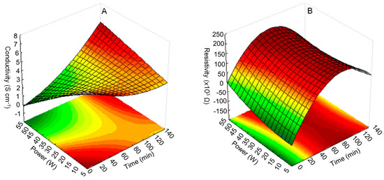 | Time, X1 (min) | Power, X2 (W) | Observed Values | Predicted Values | Observed Values | Predicted Values | |
