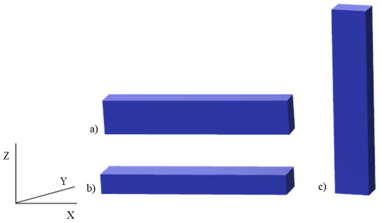 Print orientation: (a) edge (Y), (b) horizontal (X), (c) vertical (Z). Own elaboration based on [19].