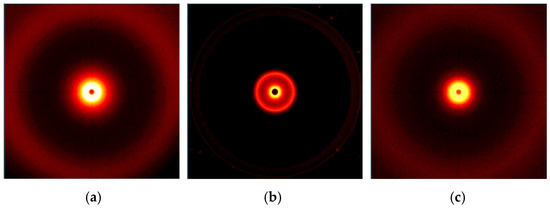 Results of 2D WAXS imaging of the fillers used: (a) S, (b) B, (c) L.