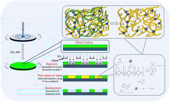 - Deng, J.Y.; Bailey, S.; Jiang, S.Y.; Ober, C.K. High-performance chain scissionable resists for extreme ultraviolet lithography: Discovery of the photoacid generator structure and mechanism. Chem. Mater. 2022, 34, 6170–6181. [Google Scholar] [CrossRef]