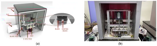 To minimize the thermal impact caused by the high-power UV light applied for curing and to secure the reproducibility of the experiment, a chamber was made, and the effect was observed while varying the internal temperature. The chamber temperature was varied by heating from room temperature of 15 °C to 40 °C and 60 °C. Process conditions other than the chamber temperature were fixed at a blade temperature of 70 °C and an exposure time of 1 s.