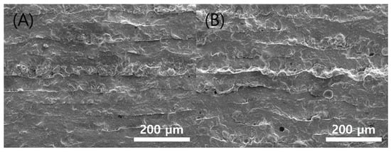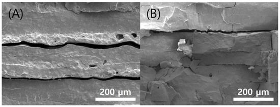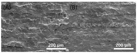 Figure 10. In addition, cross-sections of each specimen were observed by SEM, and it was found that delamination occurred between the printed layers, as shown in
