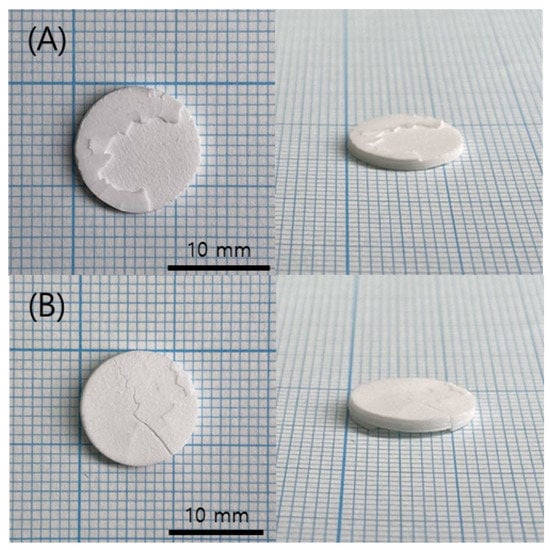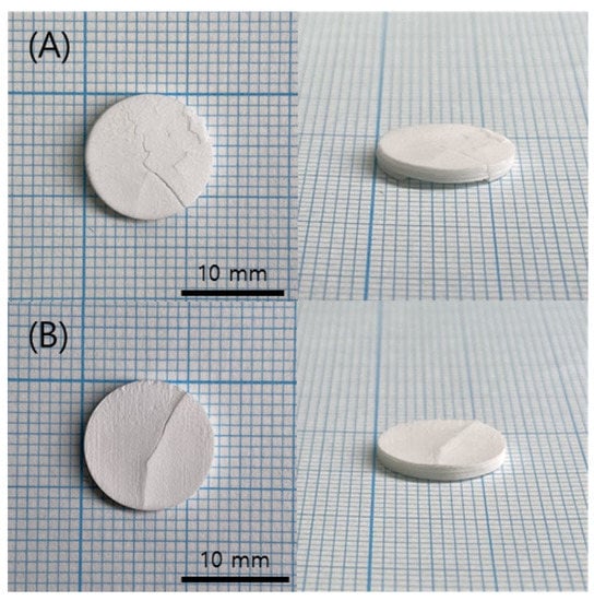 Therefore, in order to suppress the generation of cracks during sintering, it was necessary to produce green body specimens with minimized uncured areas by irradiating more exposure energy. For this, a long exposure time of 1.6 s or more must be irradiated, but as shown in the previous experiment, in this case, warpage was generated due to excessive heat of UV light and curing shrinkage, making the printing process impossible. Therefore, during the printing process, the entire area of each layer was not cured at once. Instead, it was divided into patterns, as shown in