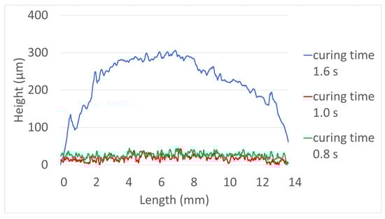 Figure 12. However, when the exposure time was set to 1.6 s for sufficient curing, edge distortion due to warpage was observed, as shown in