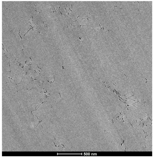 Transmission electron microscopy (TEM) was used to study the dispersion level of the CNTs. Samples were cut at a 45° angle using a Leica EM UCG ultramicrotome equipped with a diamond blade. A Tecnai G2 20 Twin microscope (Hillsboro, OR, USA) was used at an accelerating voltage of 200 kV.