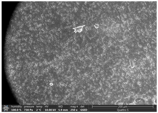 HA filler (1 mL) was prepared and degraded with hyaluronidase following the procedure described in ‘Hyaluronidase Acid Filler Degradation.’ Degraded fillers were poured onto filter paper (pore size 1 μm). The residue was analyzed using SEM (2 °C, 747 Pa, 100% humidity, Quattro S SEM, approximately 250–5000×, Thermo Fisher, Waltham, MA, USA) at the Korea Advanced Institute of Science and Technology.