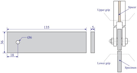 In the current research work, we designed, printed, and examined double-shear specimens with various and ratios. Indeed, the bearing failure mode might be attained by using high and ratios. As explained in [28], it is advised to consider the and ratios at least 6 and 3, respectively. Here, we fabricated specimens with diameter of 3, 4, 6, and 12 mm which give us different and ratios. Based on different hole diameters, the effects of hole diameter on the mechanical performance of the specimens can be determined. Since the specimen thickness has not a significant effect on the failure mode of the parts, all specimens were prepared with the same thickness.