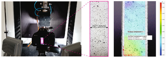 This section presents the application of the DIC technique for verification of our experiments. When a full field strain profile is required, DIC as a contactless and non-interferometric optical method provides a solution. DIC uses photogrammetric techniques to determine the full field and localized displacement and strain of an object. The determined displacement fields can be used to characterize the damage and rupture of the examined structural element [29]. In fact, by using the DIC technique, measurement quantities collected might be connected to the specific material reactions. DIC has been used extensively for small scale deformation events and strain measurements in different research works [30,31,32].