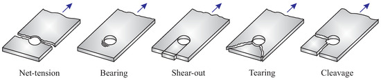 In the bolted joints, the bearing failure mode is desirable, because it gives plenty of warning prior to the final failure, and develops slowly. In addition, the bearing failure mode is favorable, since load transfer capability can still be used. The tension, shear, and cleavage failure modes frequently occur abruptly and are typically catastrophic. Indeed, the term “net-tension” describes a situation wherein the joint capability for load transfer can no longer be sustained. Figure 5 shows typical failure modes which can be occurred in the bolted joints.