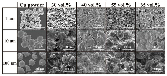 SEM images of Cu Powder and Cu/PMMA composites.