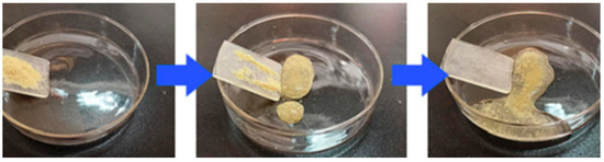 In addition to traditional superhydrophobic materials, new materials are used for efficient oil–water separation, such as candle soot, corn stover fiber, and wood chips. Biodegradable wood chips are one of the emerging materials for superhydrophobic oil–water separation applications at present. It was reported that [80] utilized a low-cost sawdust–polystyrene (SD–PS) composite and developed a facile strategy to prepare a free-standing superhydrophobic pellet for efficient oil–water separation. More importantly, it is feasible to simple recovery of the absorbed oil. The results expressed that the fabricated superhydrophobic pellet can show excellent separation efficiency for various oils from water, including turbid water, warm water, also for kerosene, n-hexane, diesel, and coconut oil (Figure 9 and Figure 10).