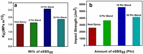(a) Fracture toughness and (b) impact strength of neat epoxy and epoxy/eSBS55 blends systems.