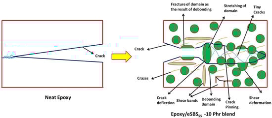 A schematic representation of possible mechanism by which eSBS55 toughens epoxy.