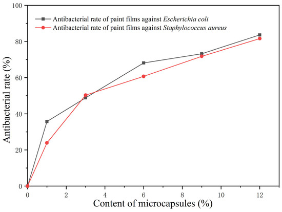 Antibacterial rates of the paint films with different loadings of the microcapsules.