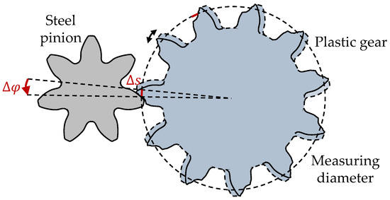 The change of the timing difference Δt = t1 − t0 as an expression of the angular displacement between steel pinion and plastic gear is illustrated in Figure 3.