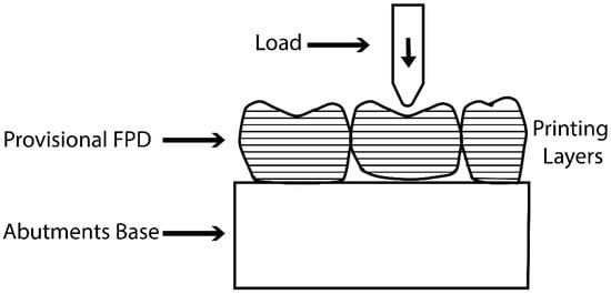 - Henderson, J.Y.; Korioth, T.V.; Tantbirojn, D.; Versluis, A. Failure load of milled, 3D-printed, and conventional chair-side-dispensed interim 3-unit fixed dental prostheses. J. Prosthet. Dent. 2022, 127, 275.e1–275.e7. [Google Scholar] [CrossRef]