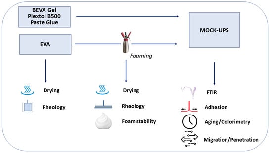 Furthermore, the adhesive foams produced were analyzed on the mock-up to inspect the adhesive drying rate on a system that simulated the targeted application.