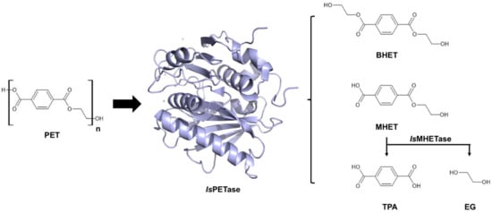 - Liu, C.; Shi, C.; Zhu, S.; Wei, R.; Yin, C.-C. Structural and functional characterization of polyethylene terephthalate hydrolase from Ideonella sakaiensis. Biochem. Biophys. Res. Commun. 2019, 508, 289–294. [Google Scholar] [CrossRef]
