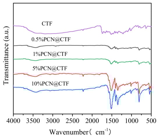 FTIR spectra of CTF and x%PCN@CTF.