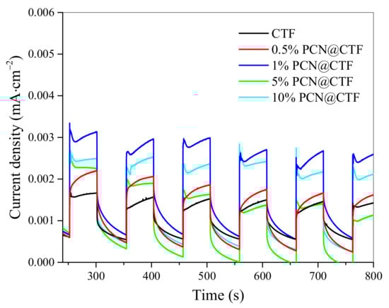 Periodic ON/OFF photocurrent responses of CTF and x%PCN@CTF.