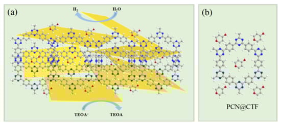 (a) Schematic illustration of the photocatalysis mechanism for hydrogen evolution; (b) the structure of PCN@CTF.
